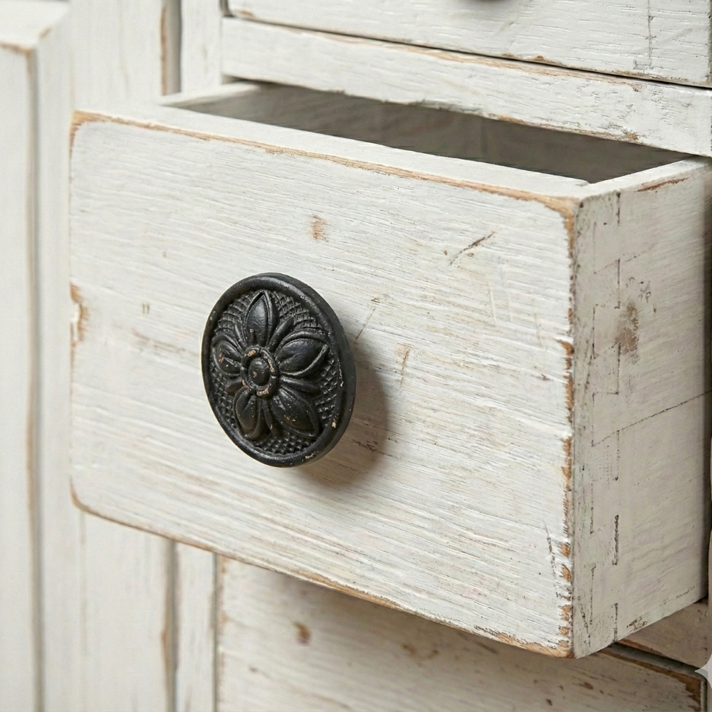 El Tirador Flor es ideal para muebles clásicos y vintage.Su diseño floral decorativo aporta carácter y elegancia, perfecto para restauración de muebles, cajones y puertas tradicionales.
